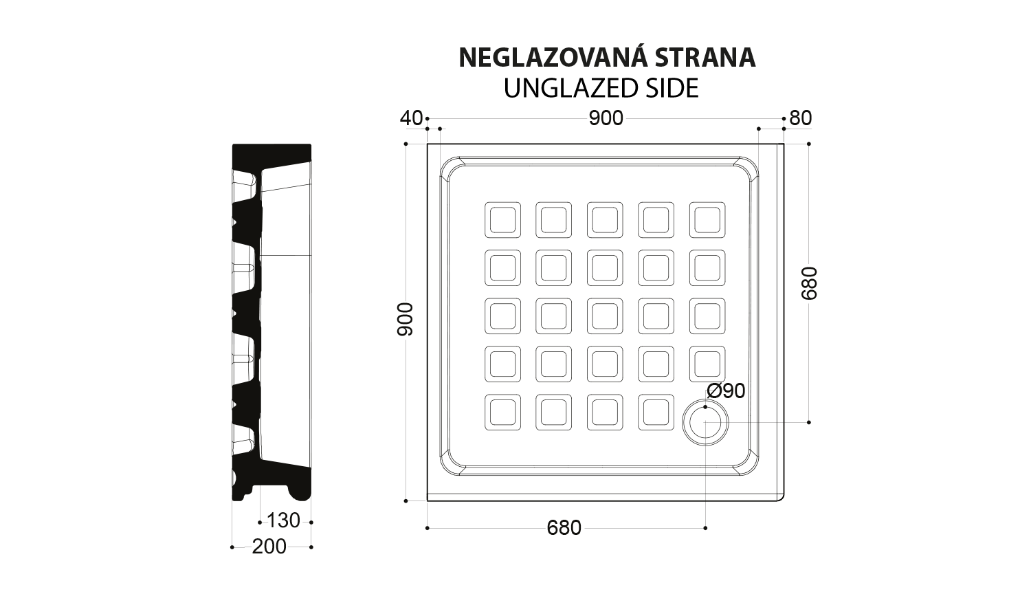 133801 KERASAN RETRO szögletes zuhanytálca, 90x90x20cm