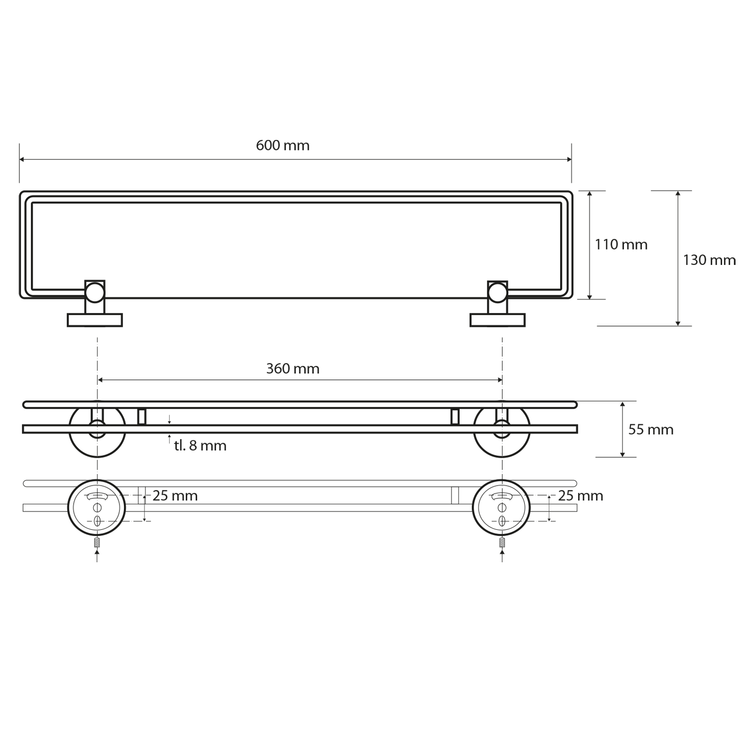 XR609B BEMETA DARK Üvegpolc, 600x55x130mm, fekete (104102040)