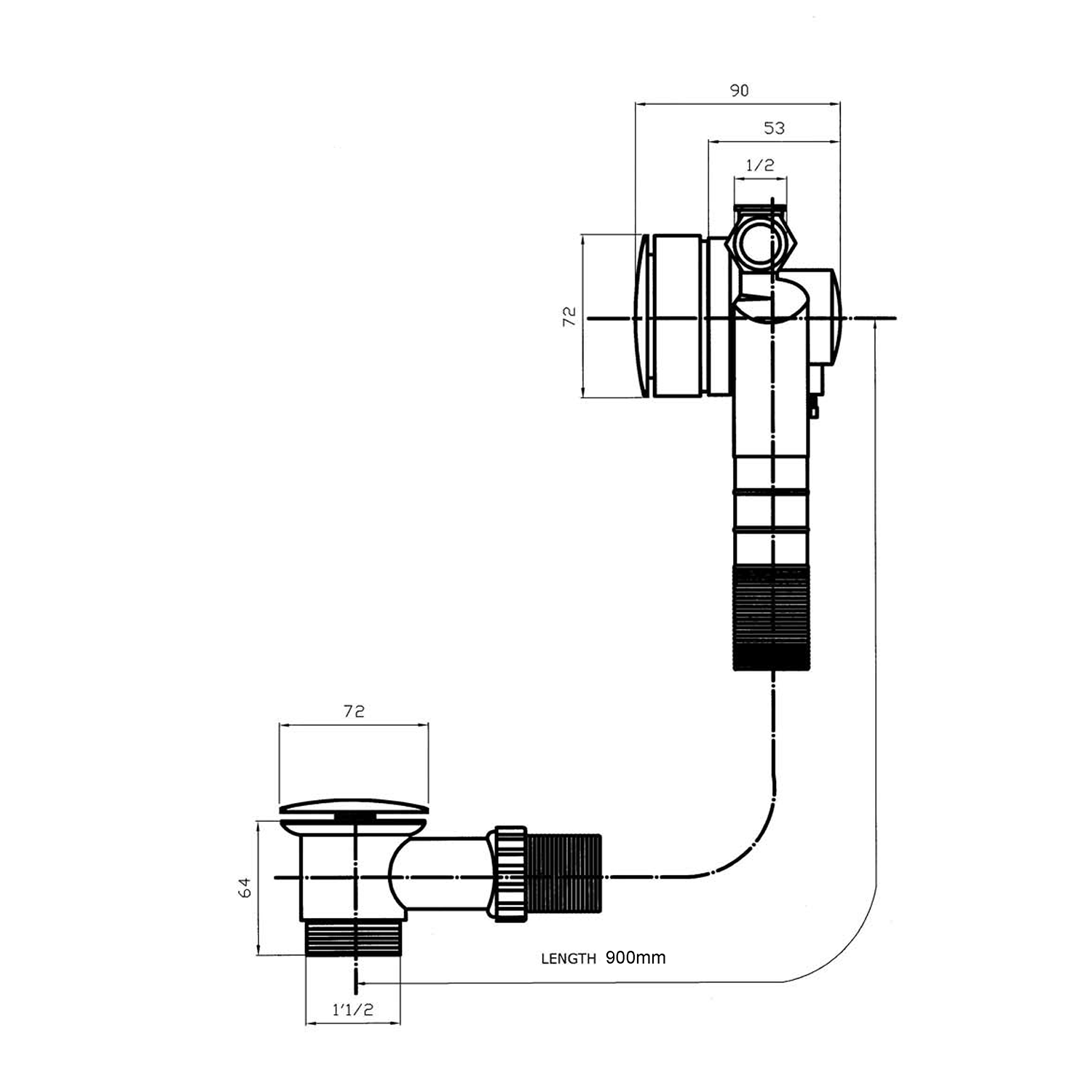 SENATOR kád le- túlfolyó töltő 900 mm hosszú csiszolt inox dugó 72mm (VR269028)