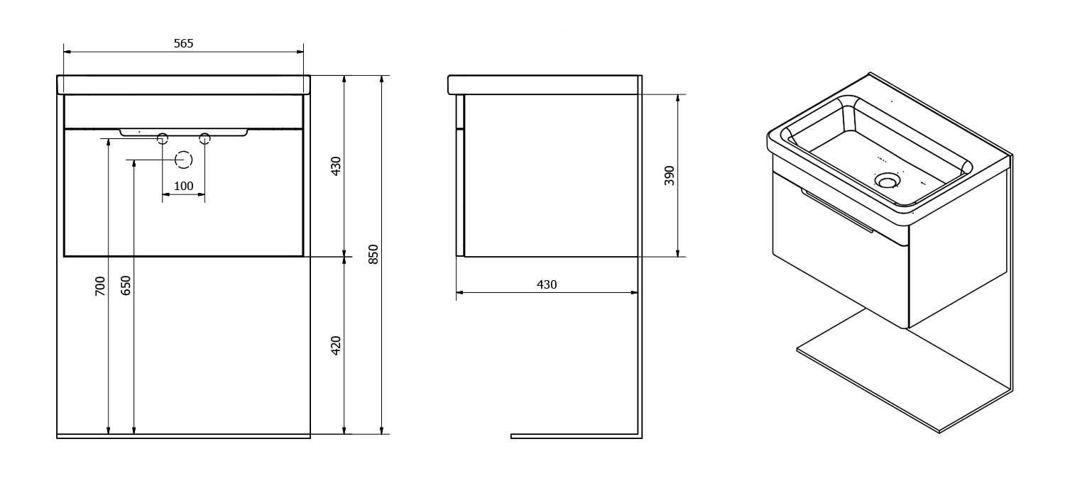 EL065-3030-01 ELLA mosdótartó szekrény CITY mosdóval, 56,5x65x43cm