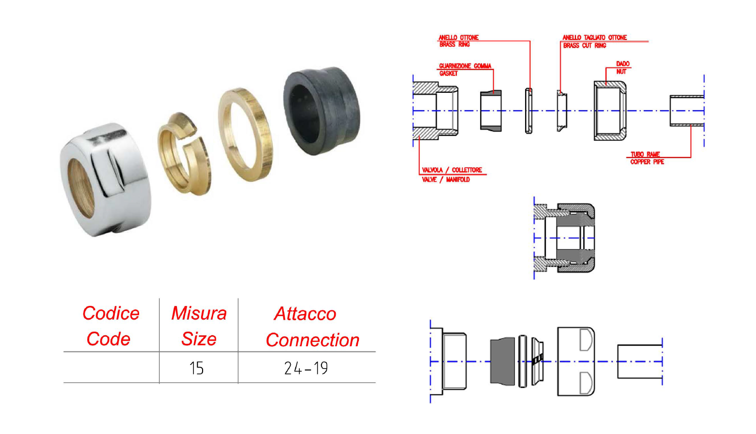 Szoritógyűrű réz csőhöz, 15mm, króm (pár) (CP6015)