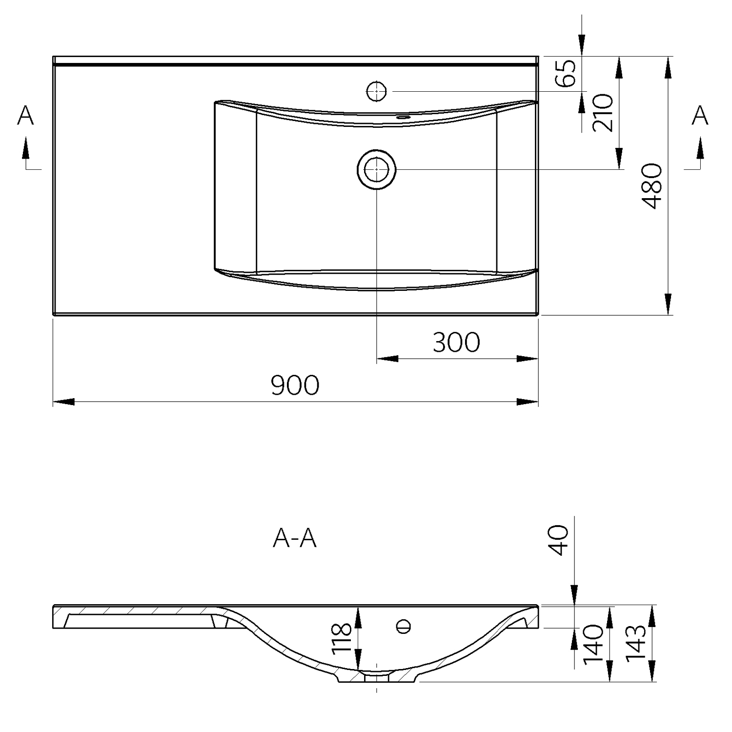 50094 LUCIOLA öntöttmárvány mosdó, jobbos, 90x48cm