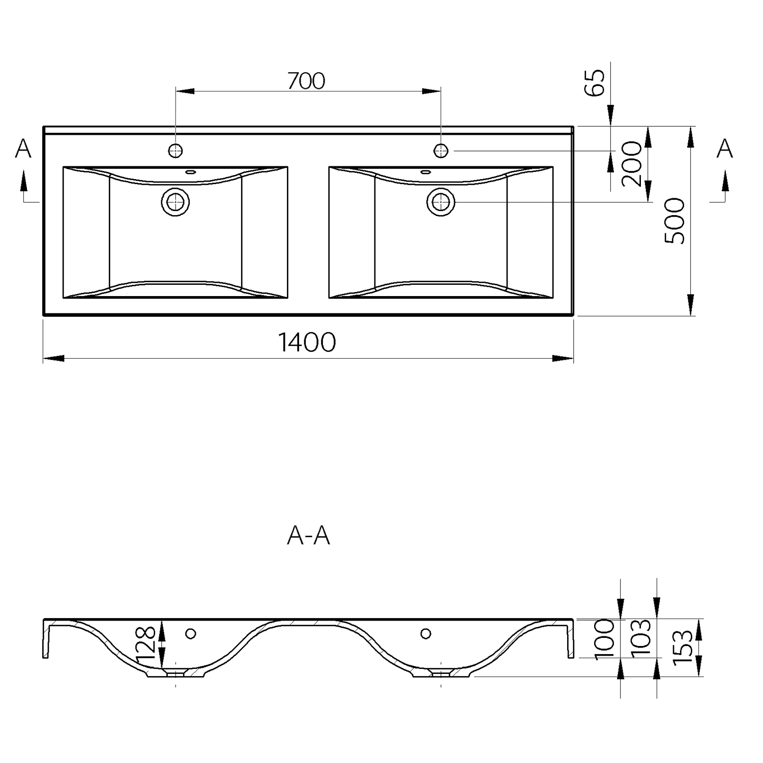 68141 FLAVIA öntöttmárvány duplamosdó, 140x10x50cm