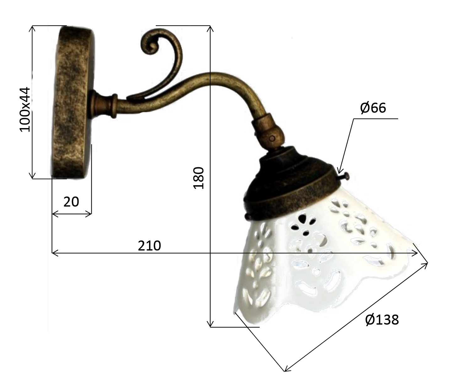 MC811 BARI fali lámpa, kerámia búra, max:40W, 230V, 138x180x210mm, bronz