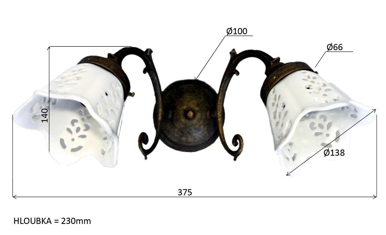 BRINDISI fali lámpa, izzó nélkül, kerámia búra, max:40W, 230V, 375x140x230mm, bronz (MC052)