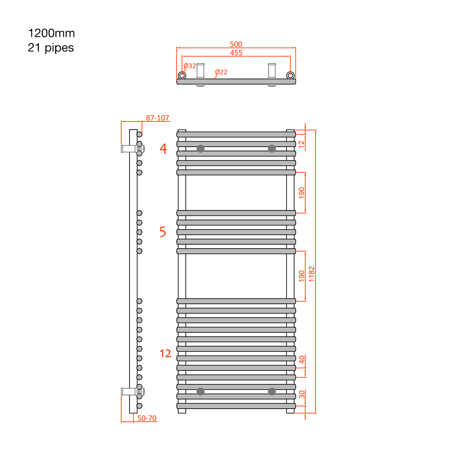 Dual fuel towel rails combine two types of heating - central and electric. They can be connected to the central heating system, and also to an electric socket. We recommend a heating rod with the same or similar performance according to the specification of the radiator.