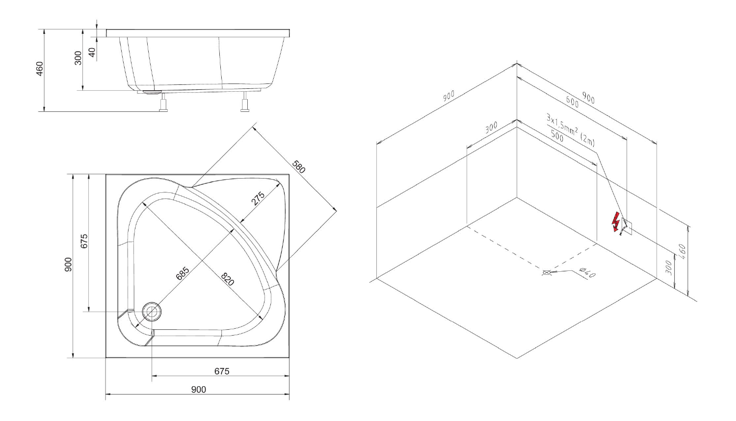 POLYSAN CARMEN DEEP zuhanytálca, lábszerkezettel, 90x90x30cm (29711)