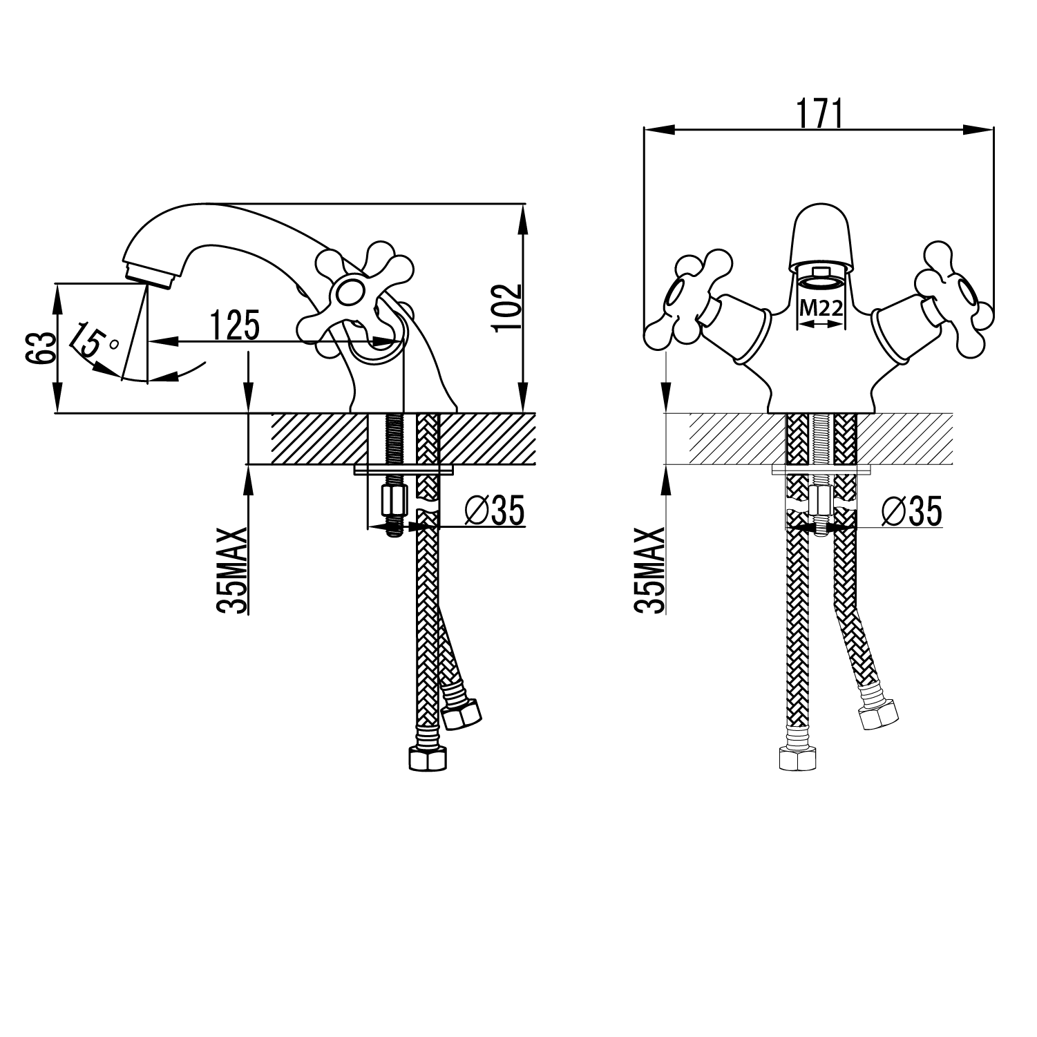 VC02 AQUALINE VICTORIA mosdócsaptelep leeresztő nélkül, króm