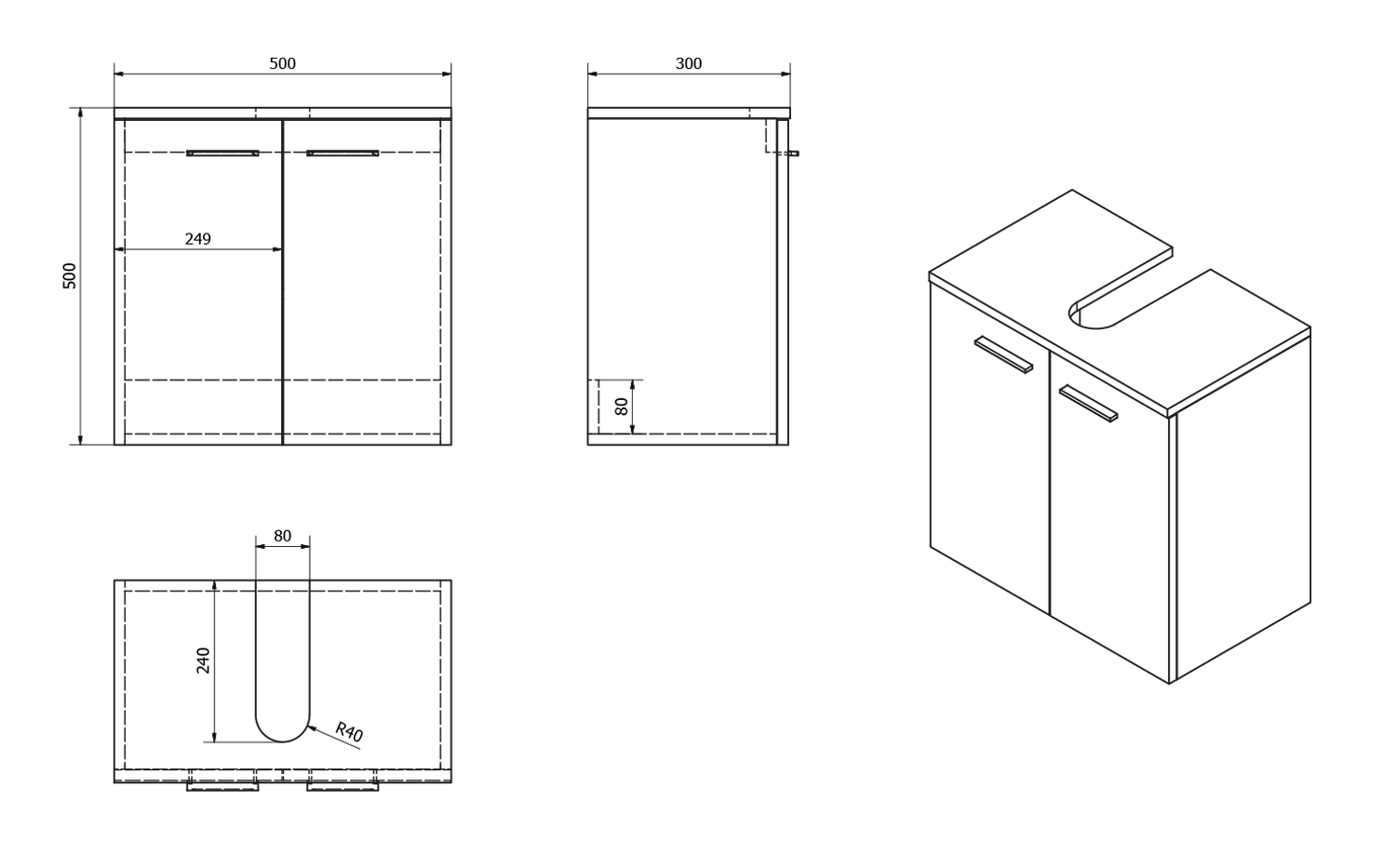 51047A AQUALINE ZOJA Mosdótartó szekrény, 49x50x24,6cm, két ajtós
