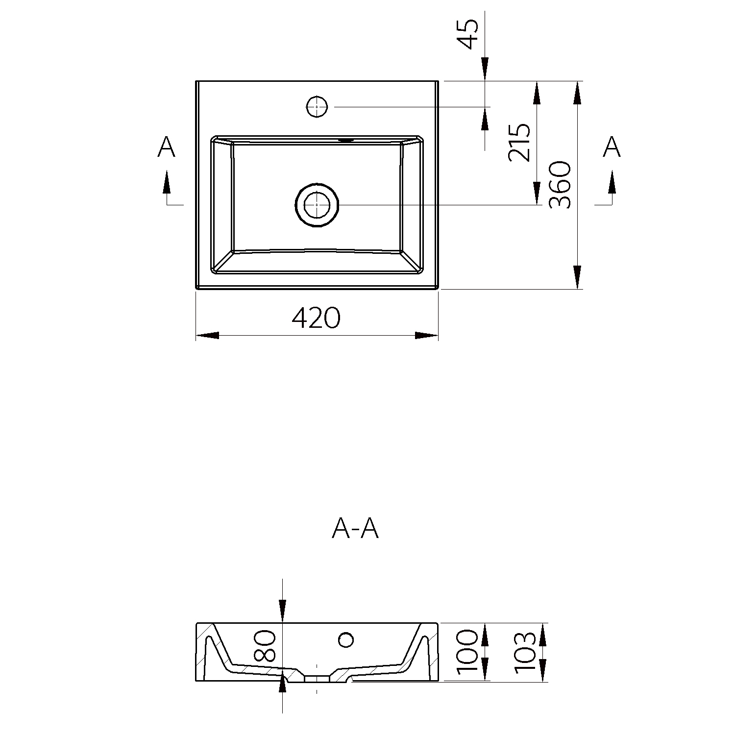 ORINOKO öntöttmárvány mosdó, 42x10x36cm (OR042)