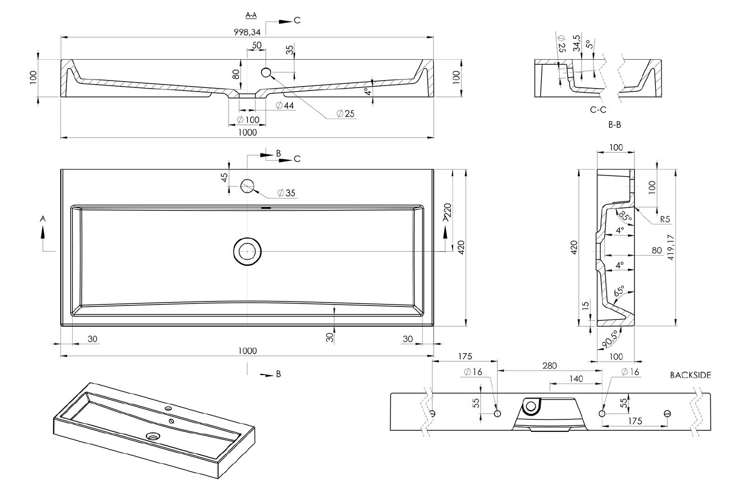 OR100 ORINOKO öntöttmárvány mosdó, 100x10x42cm