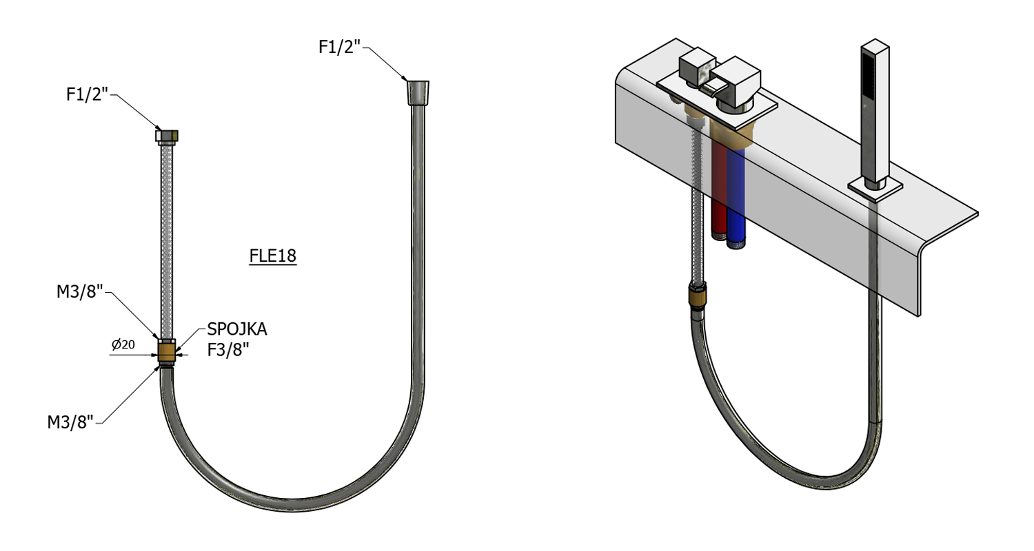 gégecső kádperemre szerelt kihúzható zuhanyfejhez, 275cm, króm (FLE18)