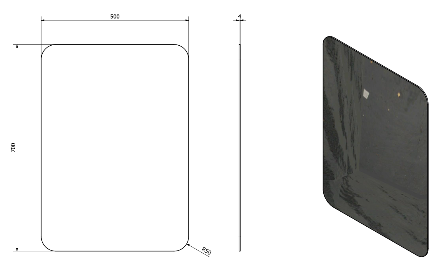 ISHAPE Tükör, lekerekített sarkokkal, akasztó nélkül, 50x70cm (AG457)