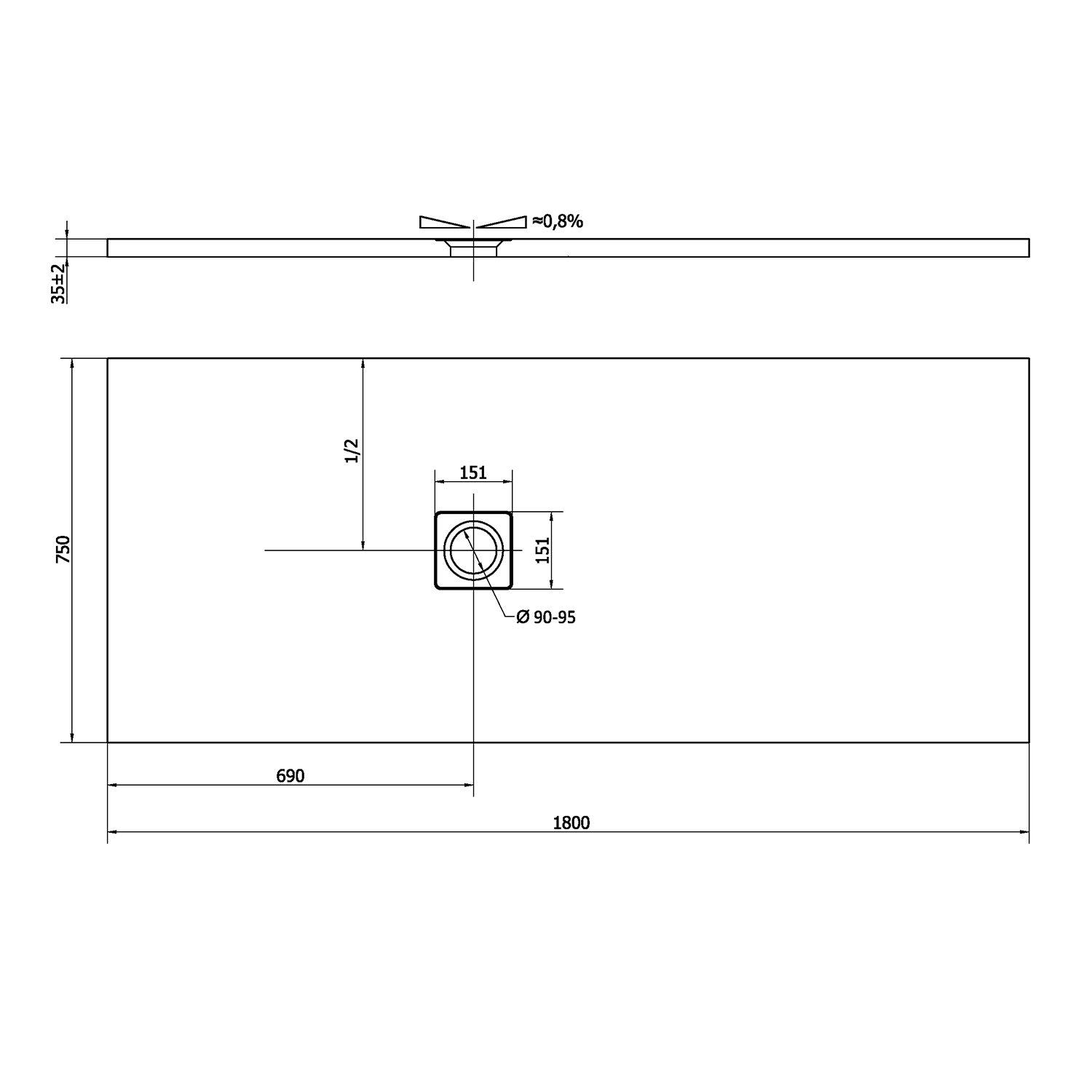 72917 POLYSAN FLEXIA öntöttmárvány zuhanytálca, 180x100x3,5cm
