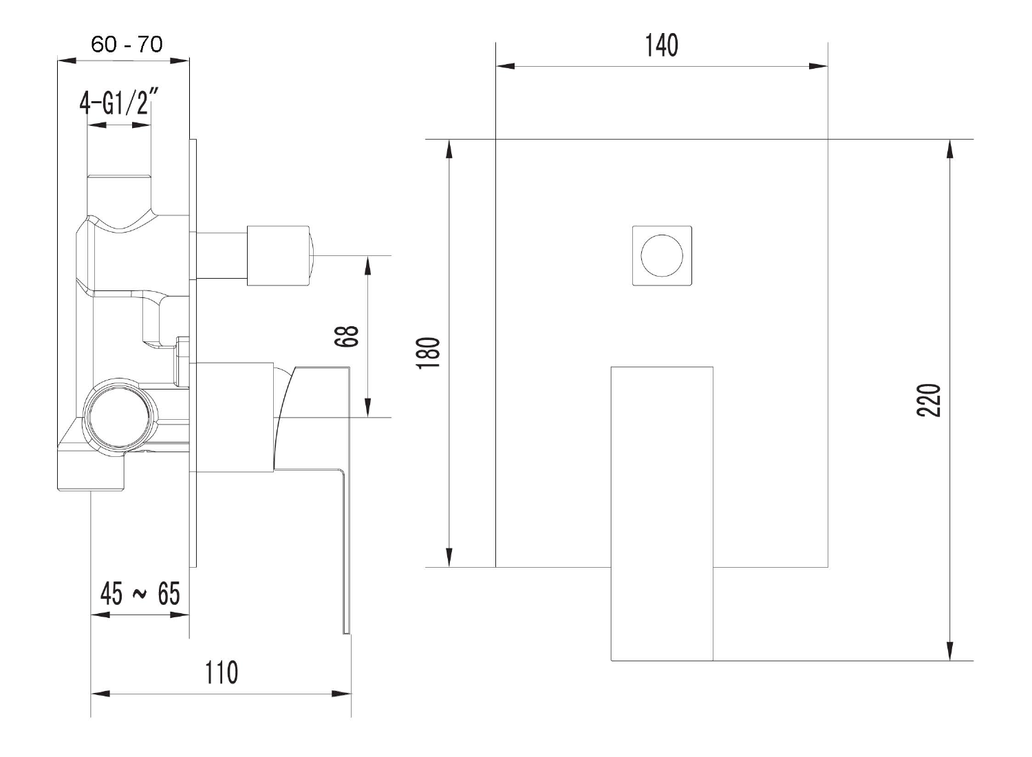 1101-42 GINKO falsík alatti csaptelep, 2-irányú váltóval, zuhanyszett nélkül, króm