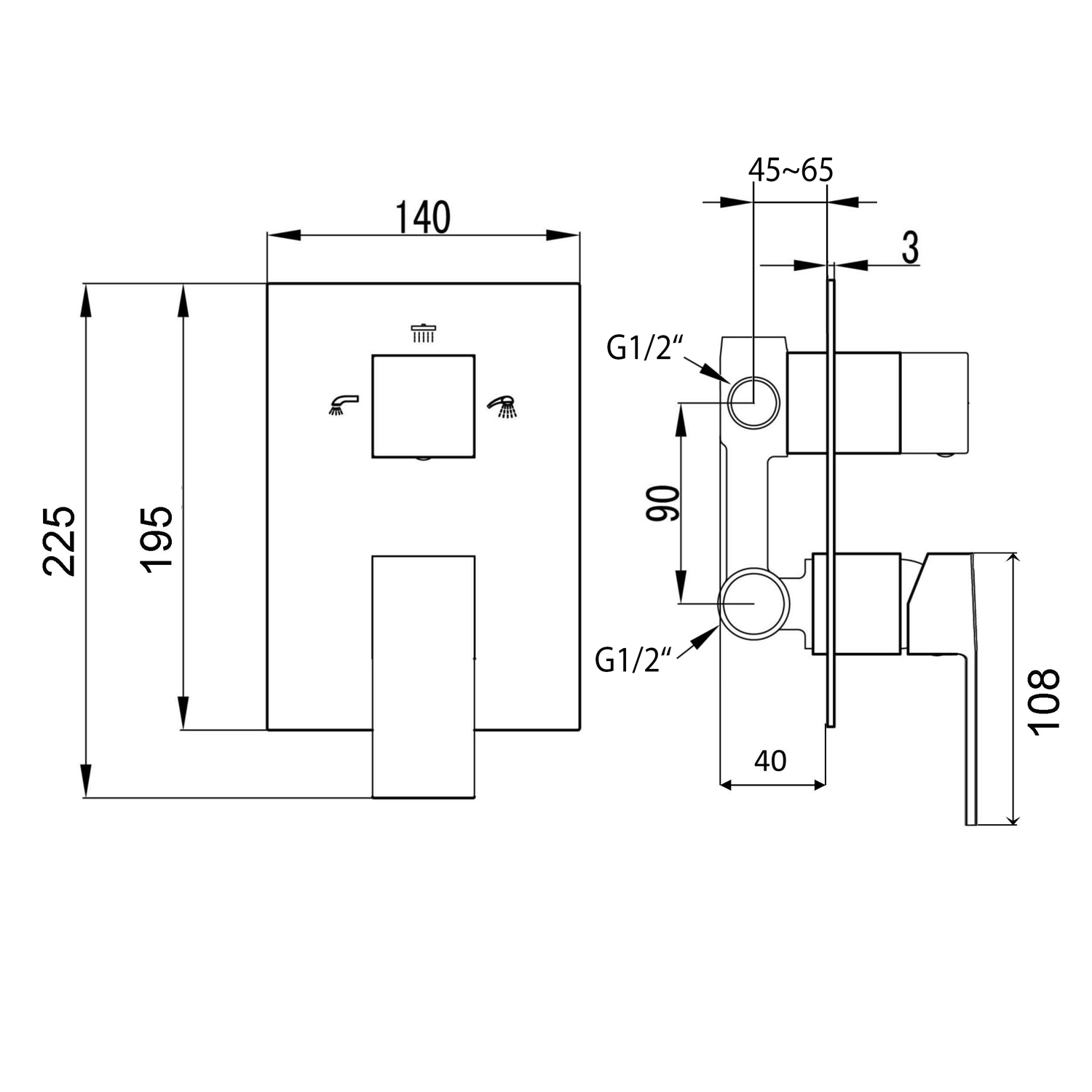 1102-44 LATUS falba süllyesztett zuhanycsaptelep, 3-irányú váltóval, zuhanyszett nélkül, króm