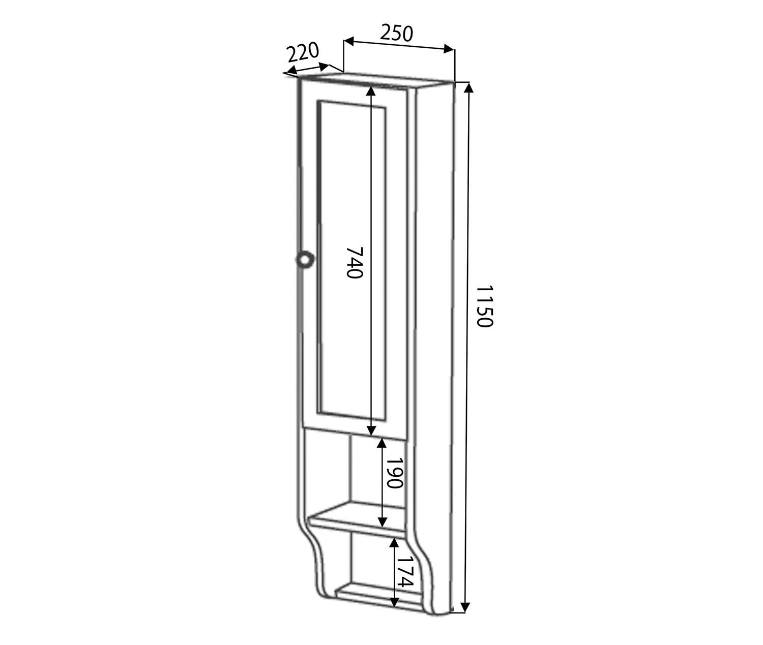 1681 RETRO pipereszekrény, jobbos, 25x115x20 cm, bükk