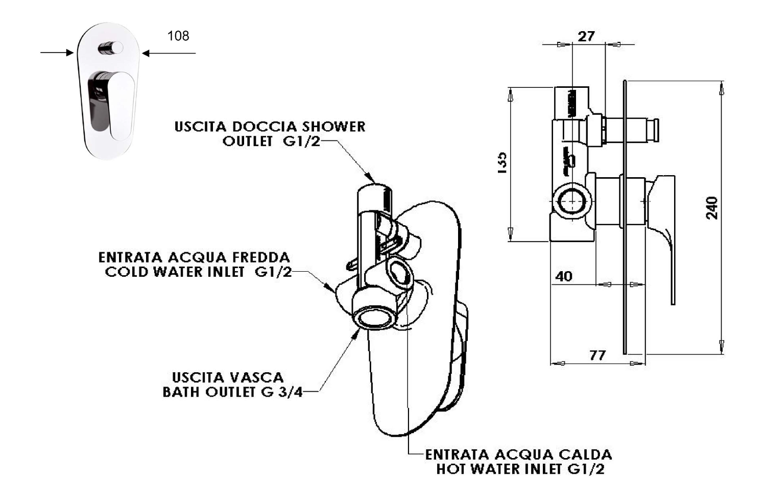 CE42 CORNELI falba süllyesztett zuhanycsaptelep, 2-irányú váltóval, króm