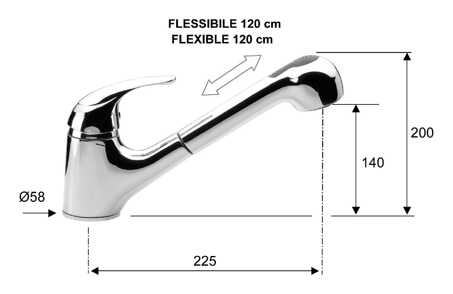 SALY Mosogató-csaptelep, kihúzható zuhanyfejjel, króm (SA070)