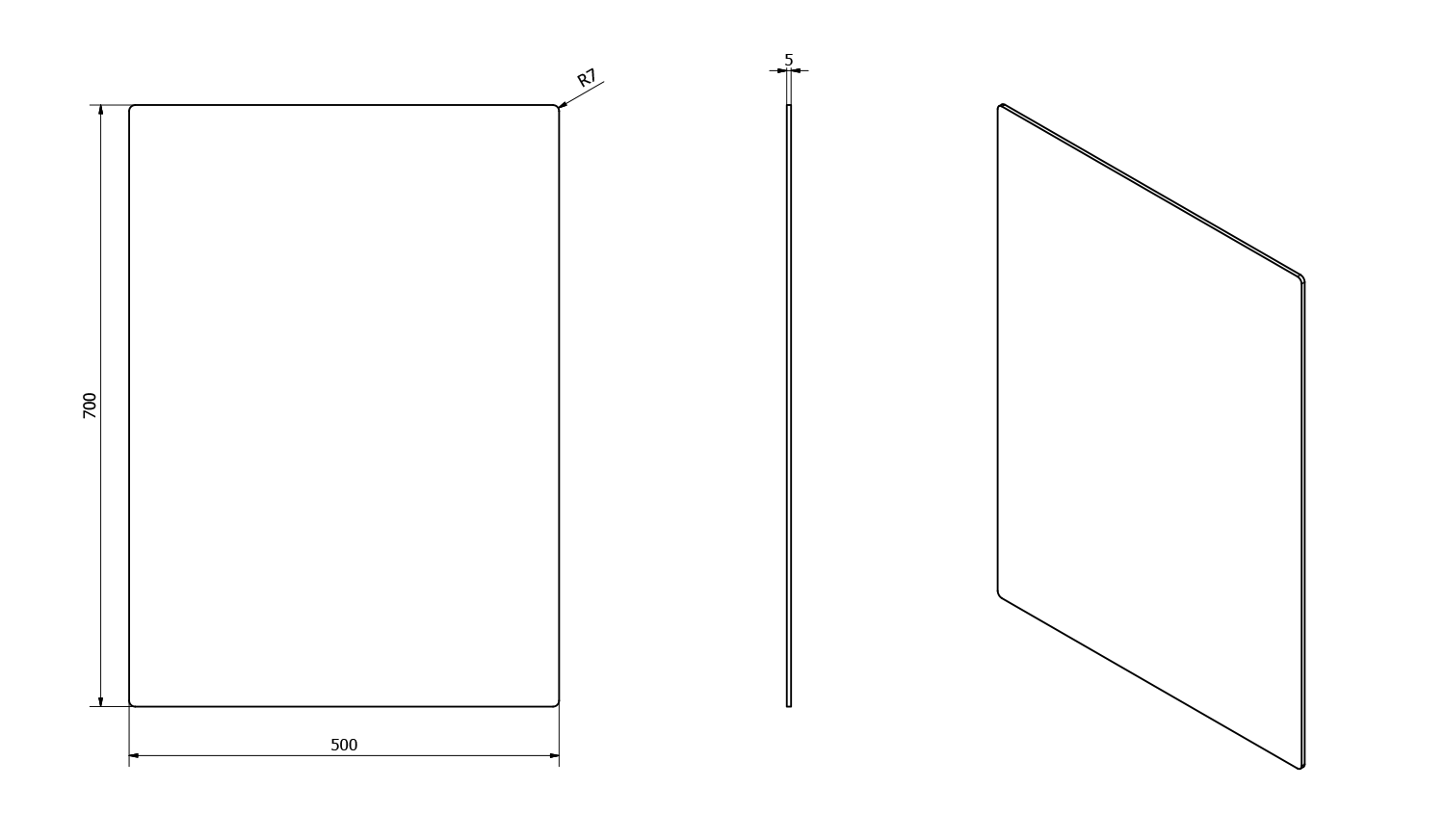 1501-29 PLAIN Tükör lekerekített sarkokkal, akasztó nélkül, 120x60cm