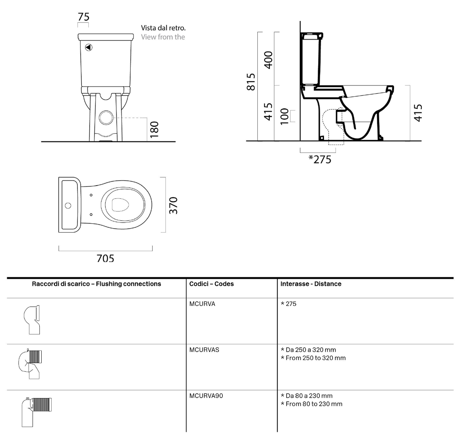 871111 GSI CLASSIC hátsó kifolyású álló WC, 37x54cm