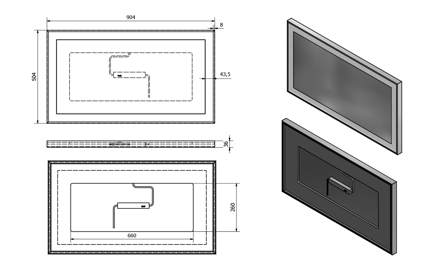 LUMINAR tükör aluminium kerettel, LED világítással, 900x500mm, króm (NL559)