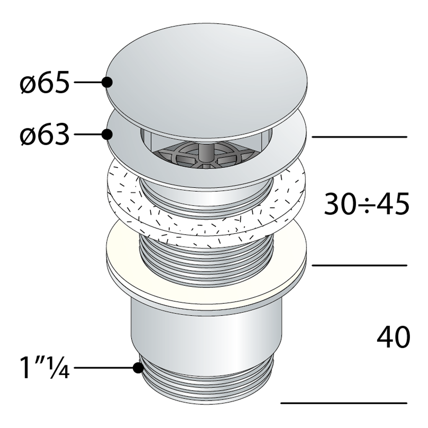 OMP TEA Mosdó lefolyó túlfolyó nélkül, nem zárható, magasság 30-45mm, réz/króm (147.555.5)