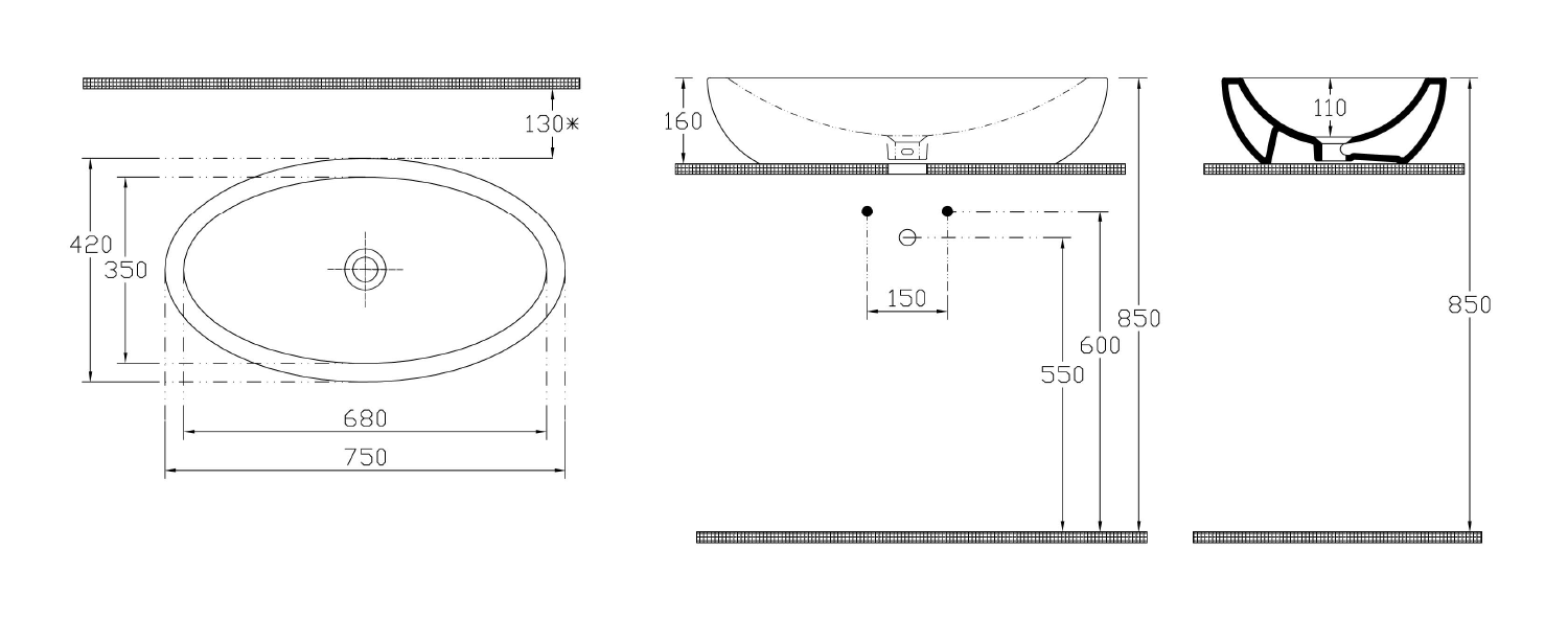 ISVEA SISTEMA pultra szerelhető kerámiamosdó, 75x42cm (10AR65075)