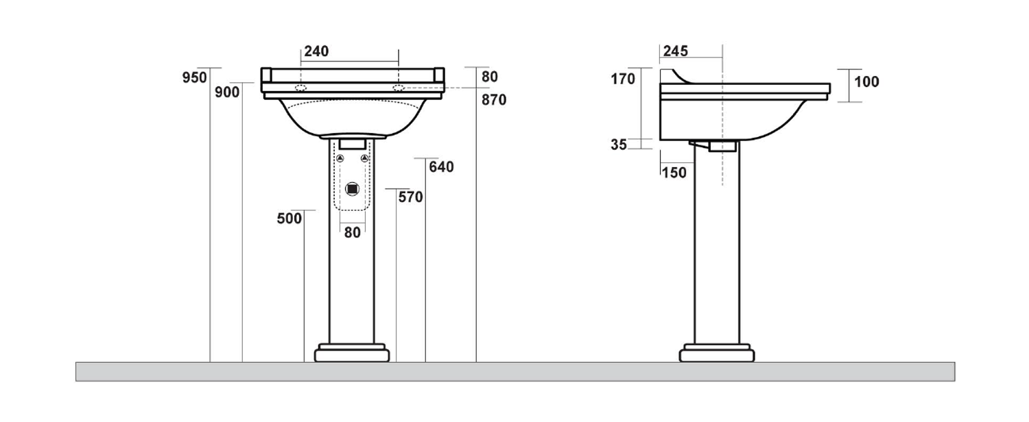 4141K1-3 KERASAN WALDORF kerámiamosdó, 3 furattal, 80x55cm