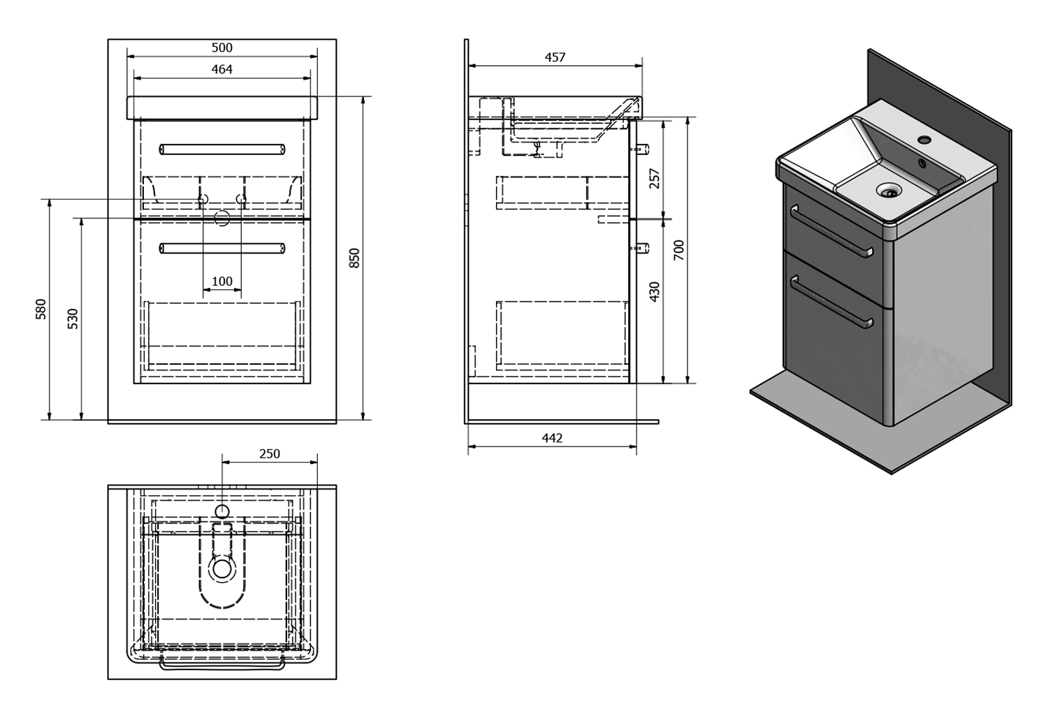 TH050-1111-01 THEIA mosdótartó szekrény THALIE mosdóval, 46,4x70x43,5cm, ezüst tölgy