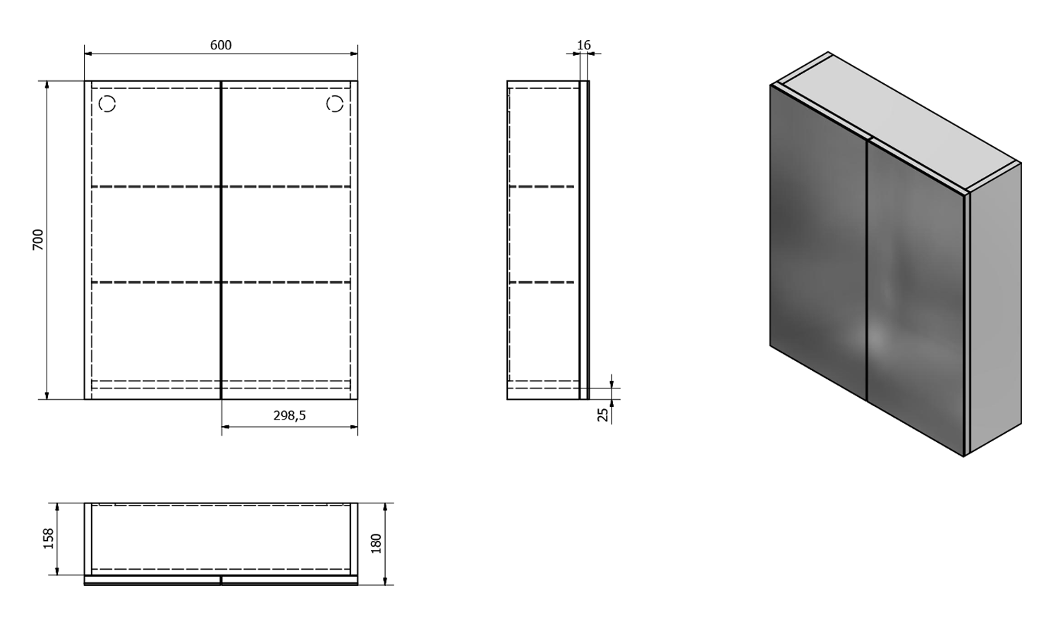 VG060 AQUALINE VEGA tükrösszekrény, 60x70x18, fehér