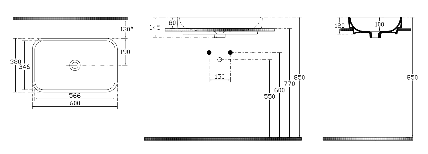 903611 GSI SAND kerámiamosdó, pultra helyezhető, 60x14x38cm, ExtraGlaze