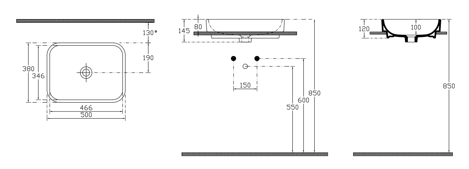 903711 GSI SAND kerámiamosdó, pultra helyezhető, 50x14x38cm, ExtraGlaze