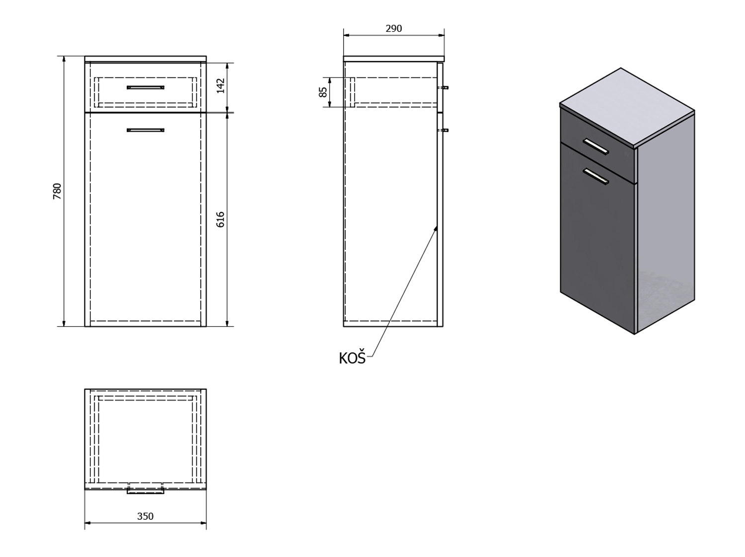 51310 AQUALINE ZOJA alsó szekrény szennyeskosárral, 50x78x2cm, fehér