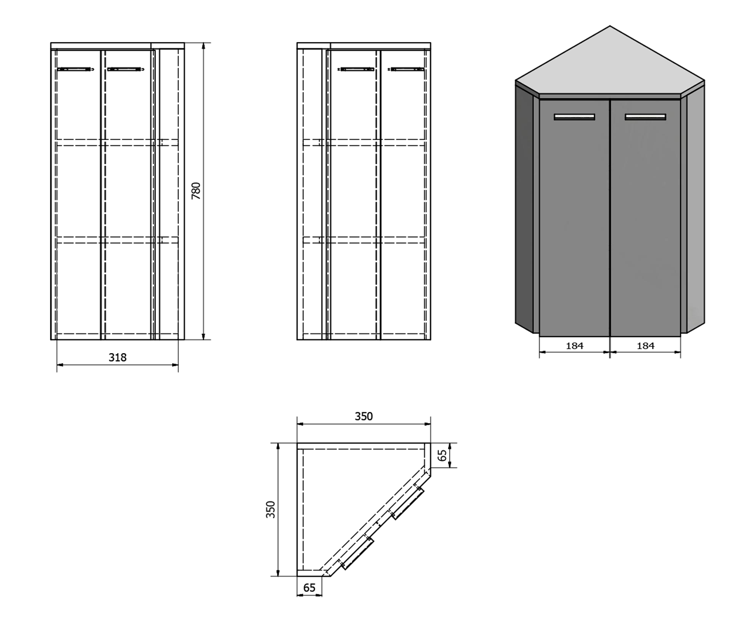 50333 AQUALINE ZOJA sarokszekrény 35x76x35 cm, platina tölgy