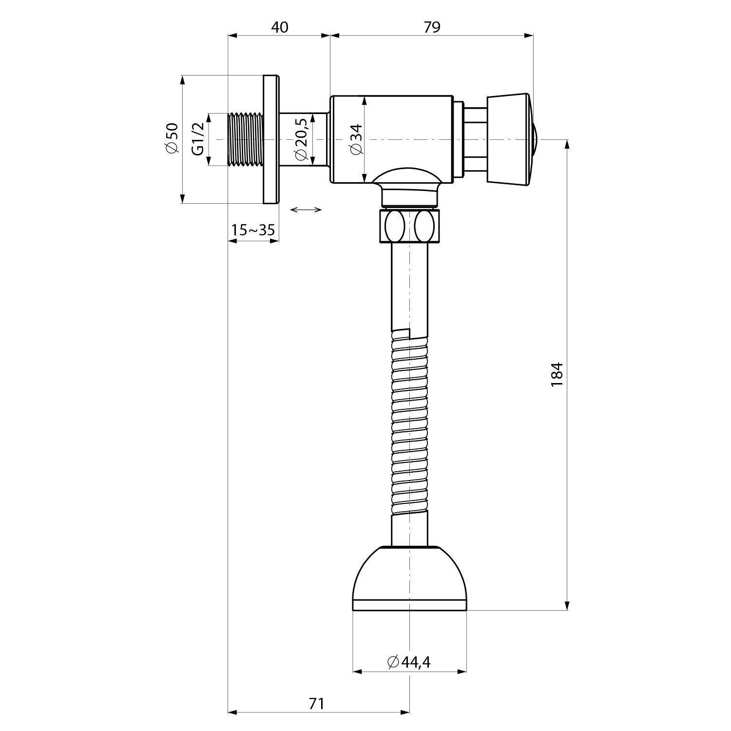 AQUALINE Önelzáró piszoár szelep, 1/2", króm (ZY12022)