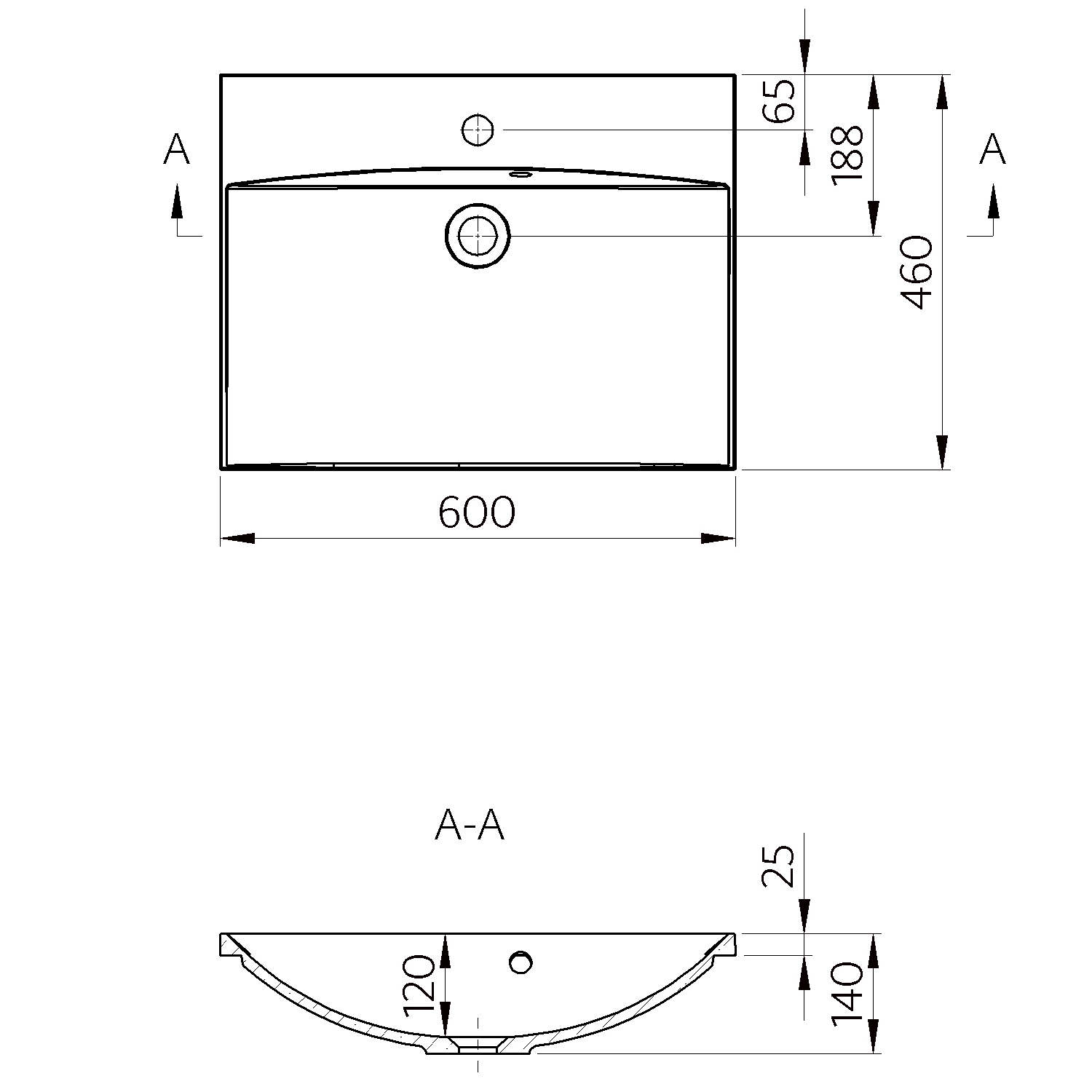 MA060-0 MARIA öntöttmárvány mosdó, furat nélkül 60x46cm