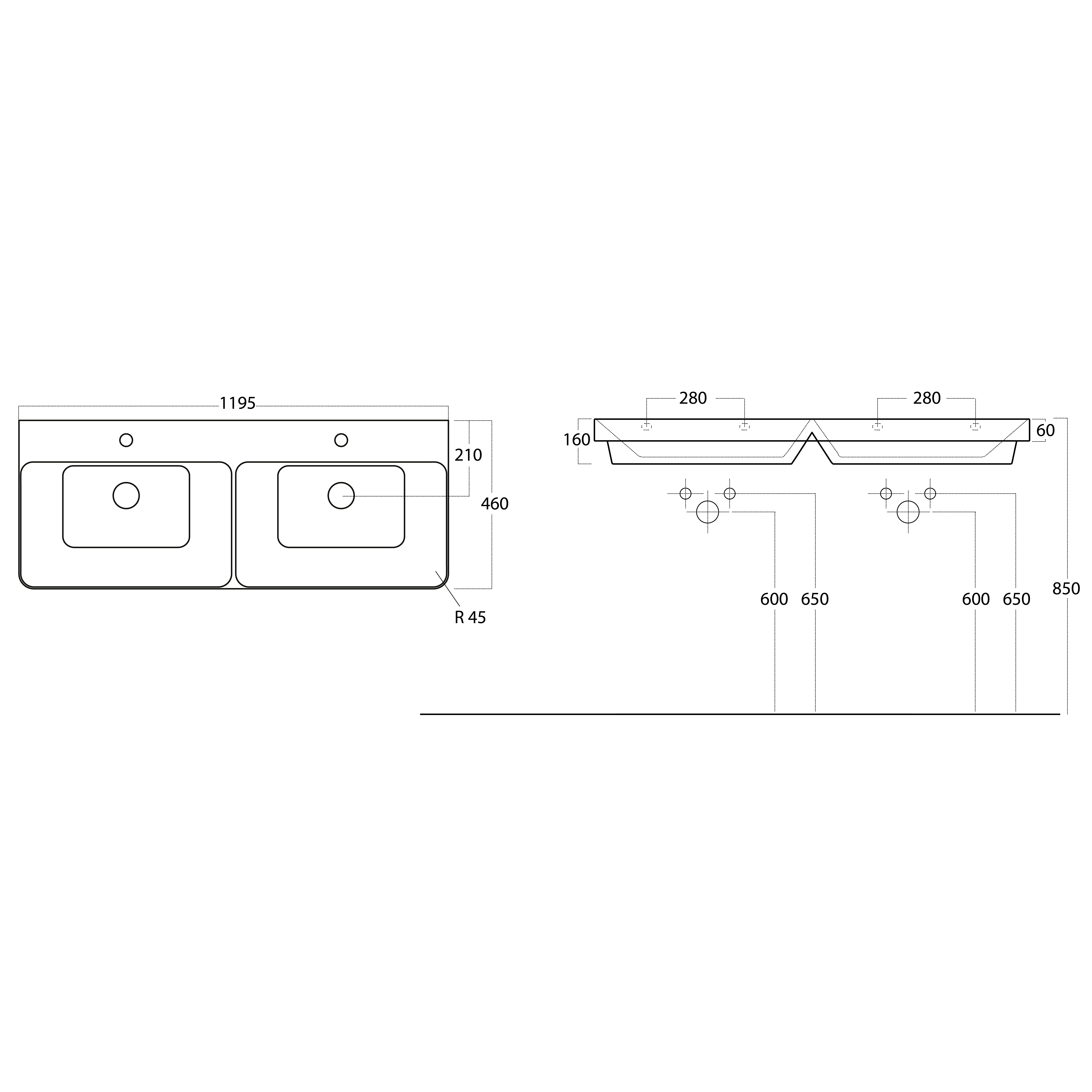 68121 FLAVIA öntöttmárvány duplamosdó, 120x10x50cm