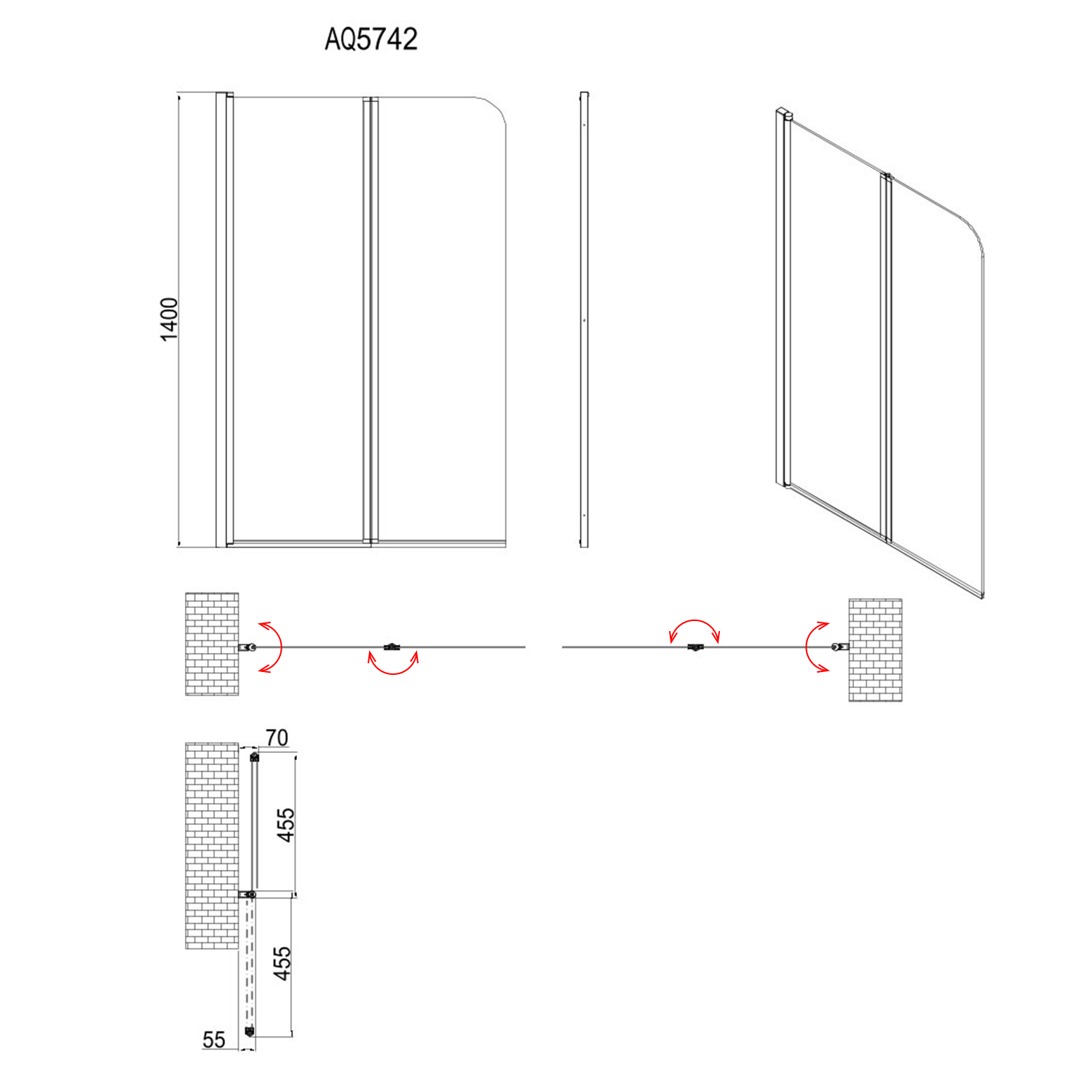 AQUALINE WILA kádparaván, kifelé-befelé nyíjó, 900mm, 4mm transzparent üveg, króm (AQ5742)