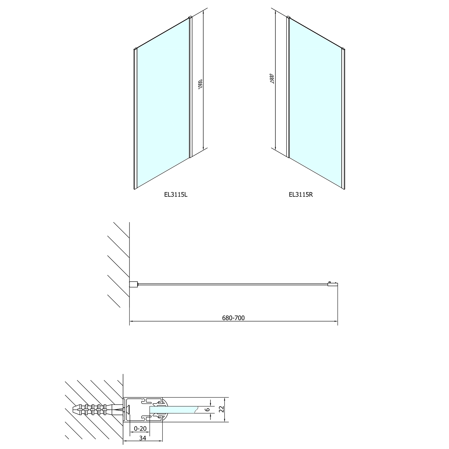 EL3415 POLYSAN EASY LINE oldalfal, 1000mm, transzparent üveg