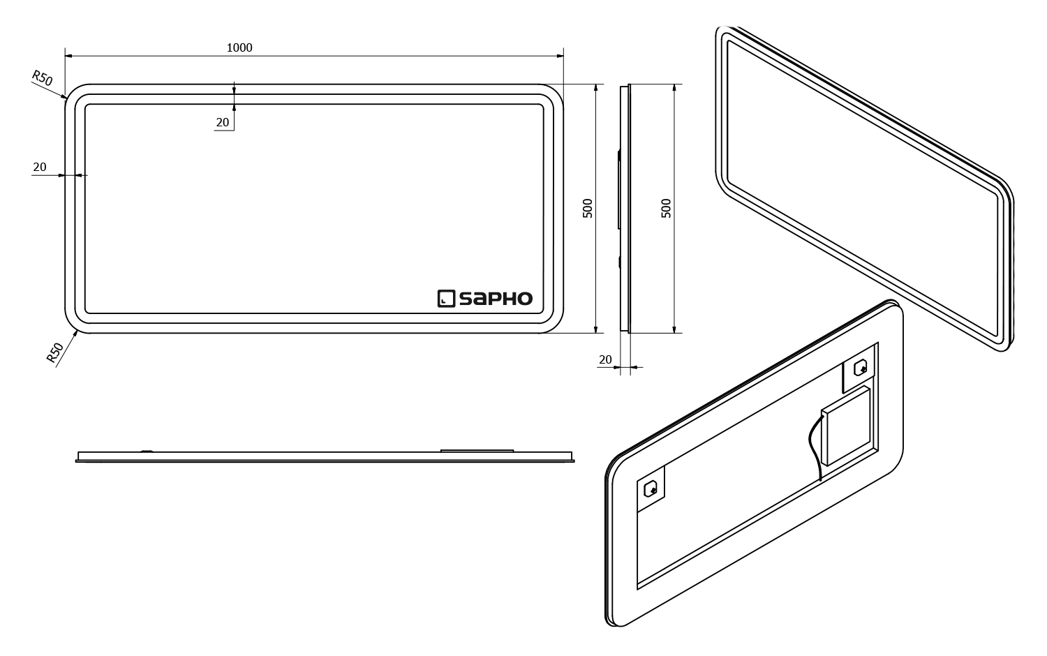 NYX Tükör LED világítással, 100x50cm (NY100)