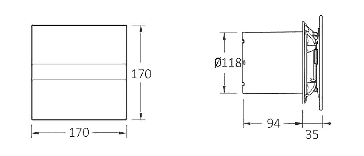 00900600 CATA E-100 GSTH ventilátor, 4/8W, automatikus, o100mm, Ezüst