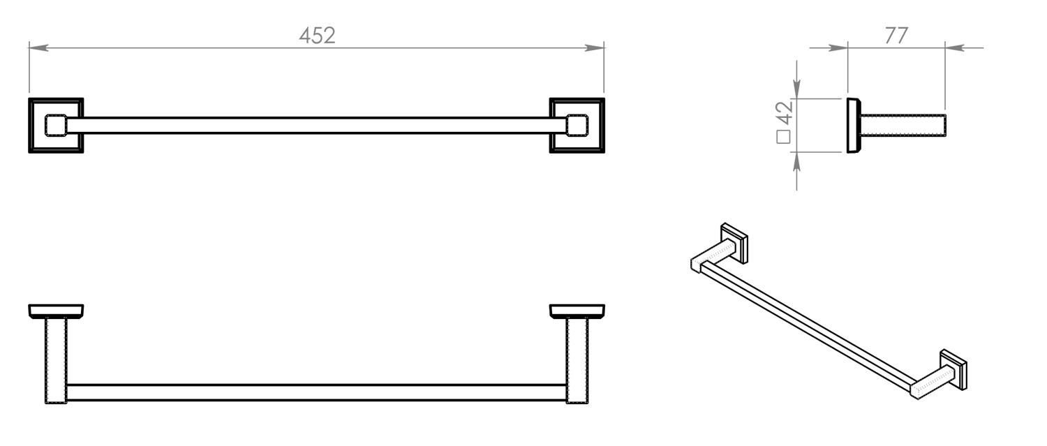 PI214513 PIRENEI törölközőtartó, 450x66mm, króm