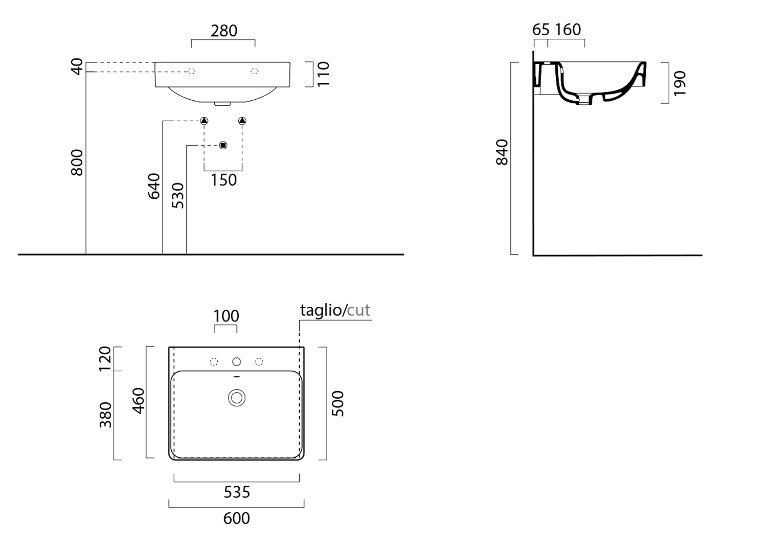 9031111 GSI SAND kerámiamosdó, 60x50cm, ExtraGlaze