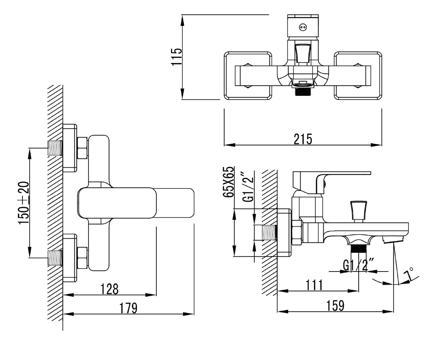 RT010 AQUALINE RITMO fali kádtöltő csaptelep zuhanyváltóval, króm