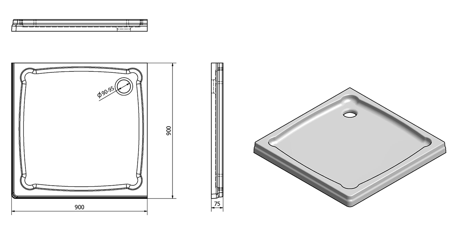 GELCO DIONA90 öntöttmárvány zuhanytálca, 90x90x7,5cm (GD009)