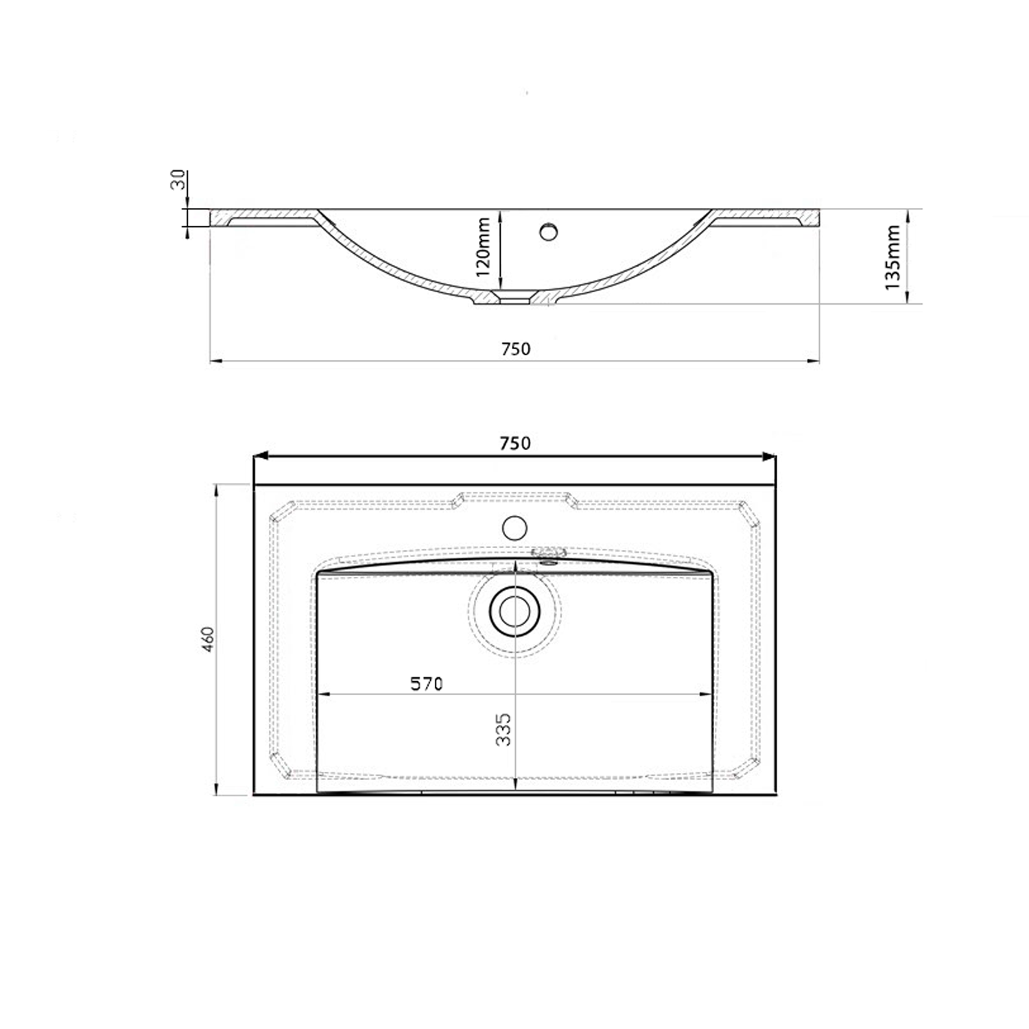 MA075-0 MARIA öntöttmárvány mosdó, csaplyuk nélkül, 75x46cm