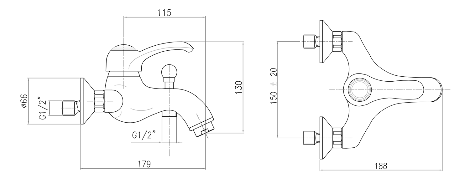 DA010 DREAMART fali kádtöltő csaptelep, króm