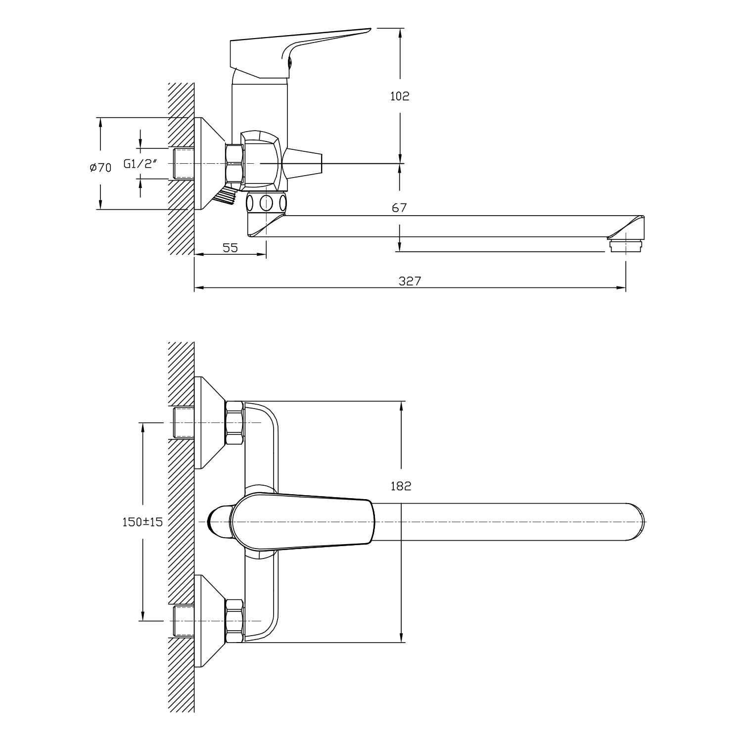 RT015 AQUALINE RITMO fali kádtöltő csaptelep kifolyócsővel, króm
