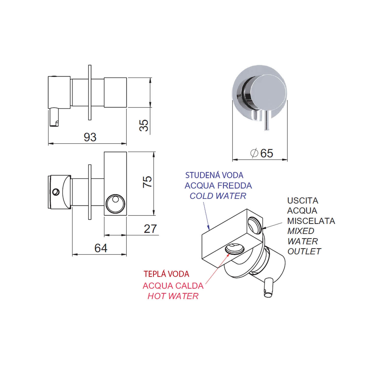 1102-40 SPECTRE falsík alatti zuhanycsaptelep, 1-irányú váltóval, zuhanyszett nélkül, króm